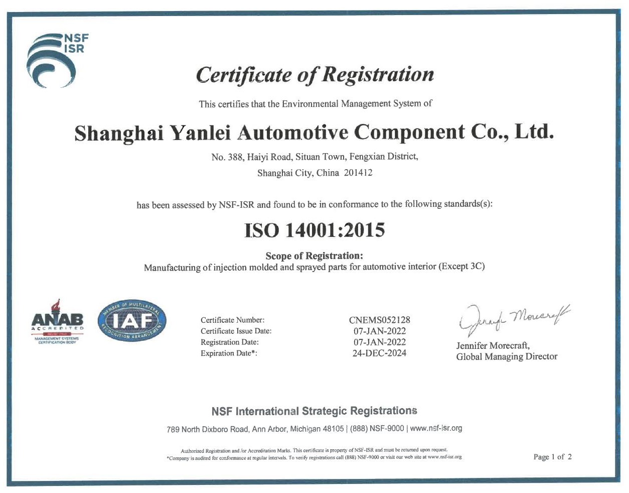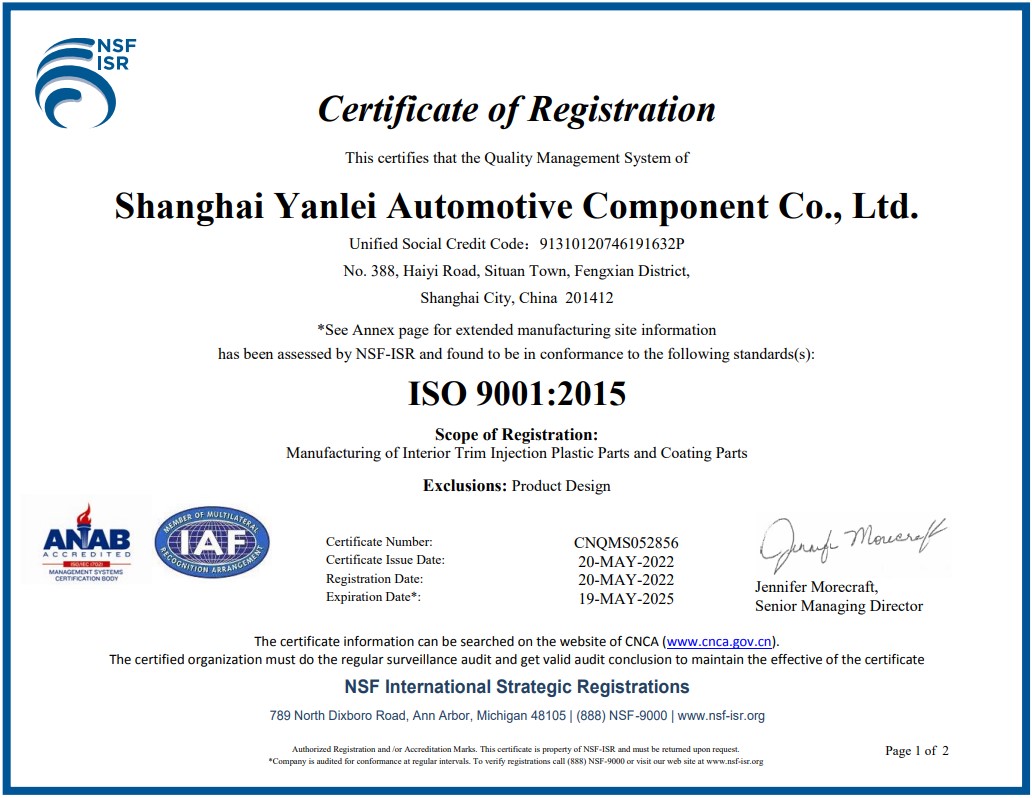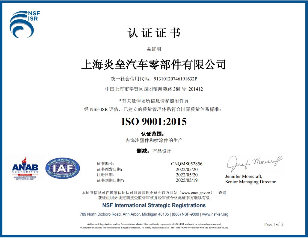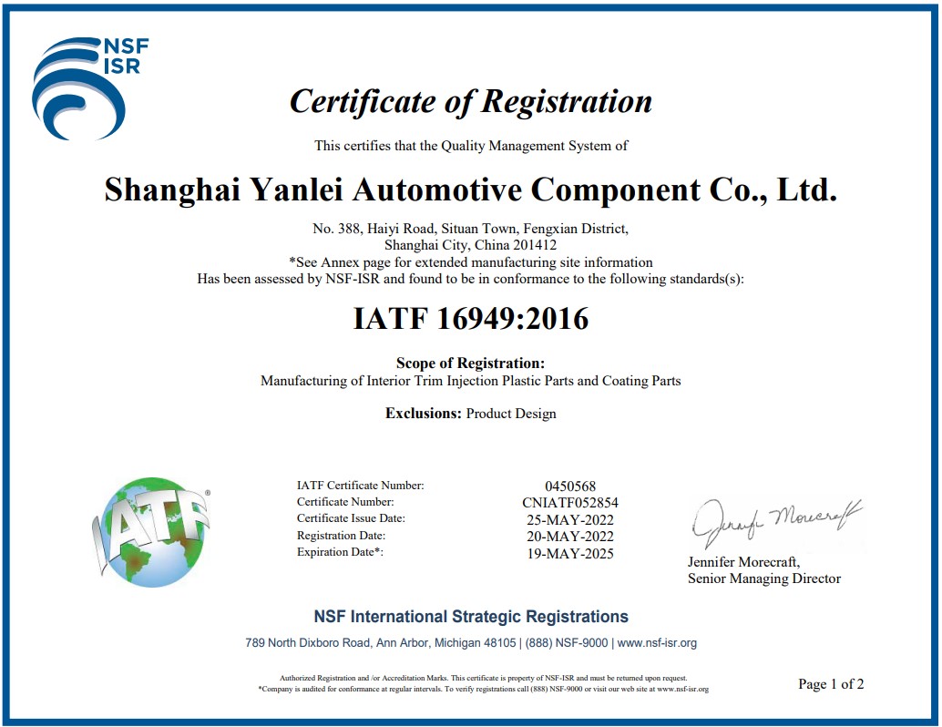 2019年5月份获得了ITAF/TS 16949质量管理体系认证证书。